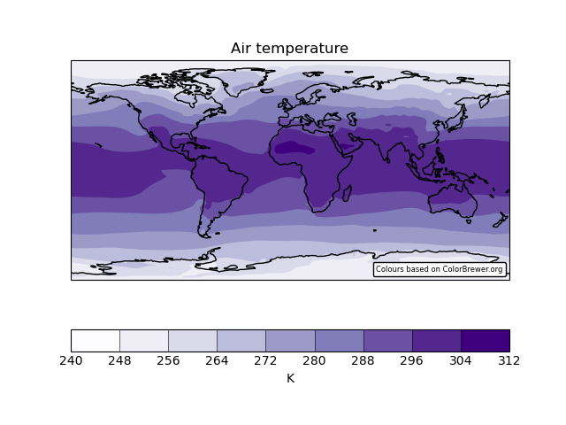 qplt.contourf(temperature_cube, brewer_cmap.N, cmap=brewer_cmap)
